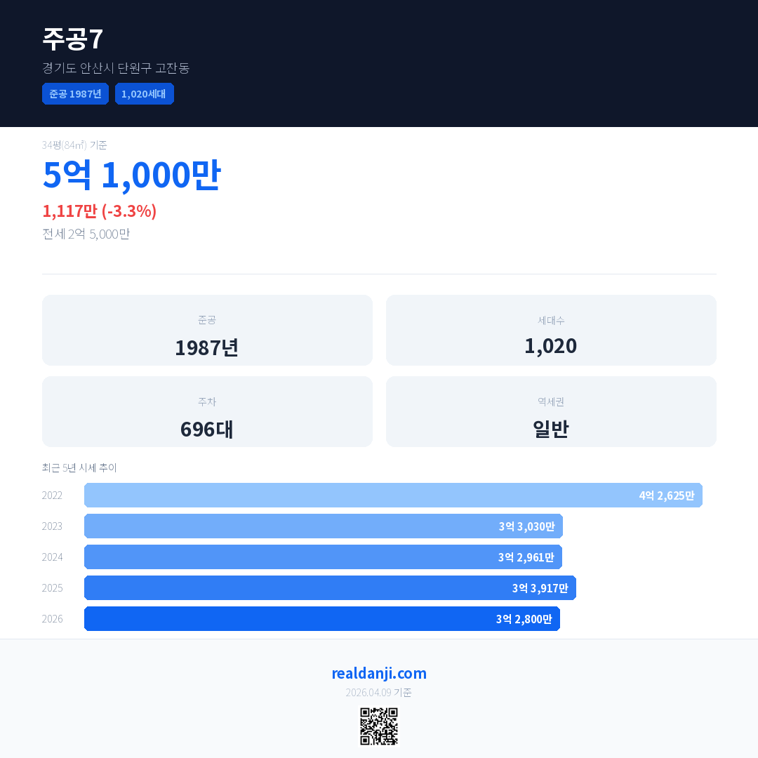 주공7 최근 거래가는 5억 1,000만입니다. (2026-04)