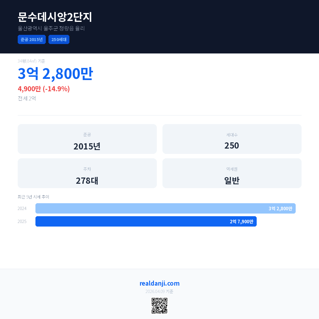 문수데시앙2단지 최근 거래가는 3억 2,800만입니다. (2026-02)
