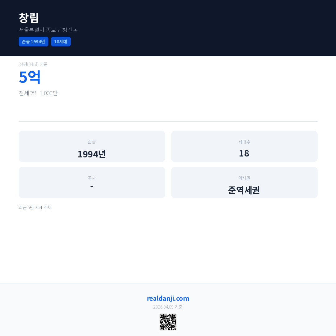 창림은(는) 1994년에 준공되었으며, 현재 32년차입니다. 총 18세대 규모입니다.