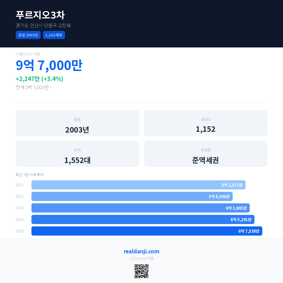 푸르지오3차 최근 거래가는 9억 400만입니다. (2026-03)