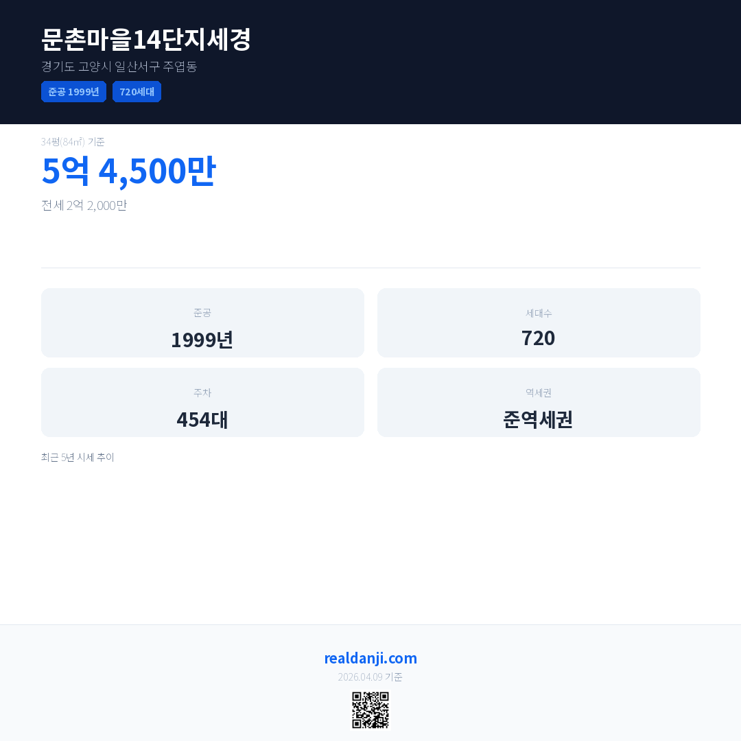 문촌마을14단지세경 최근 거래가는 5억 4,500만입니다. (2026-03)