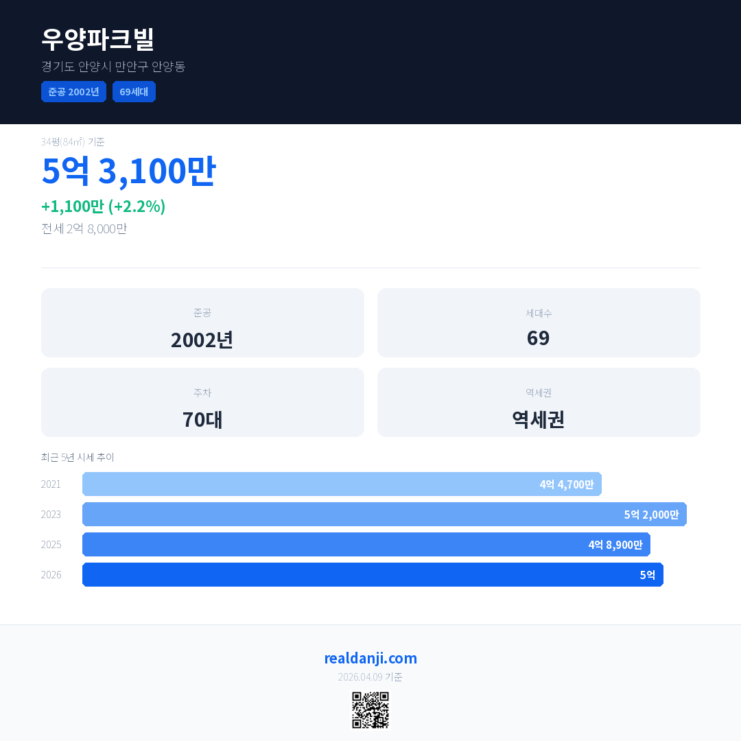 우양파크빌 최근 거래가는 5억입니다. (2026-04)