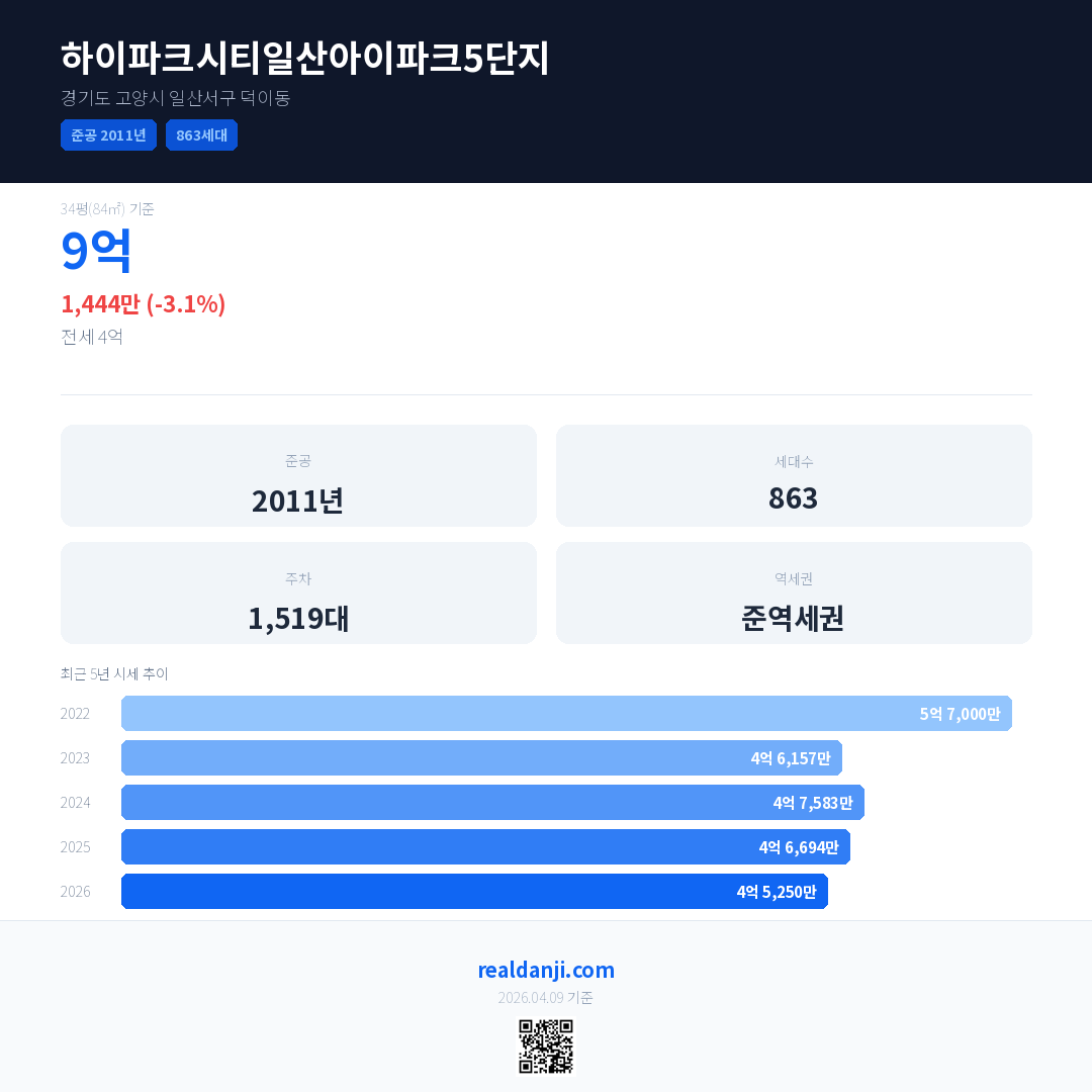 하이파크시티일산아이파크5단지 최근 거래가는 5억 1,000만입니다. (2026-04)