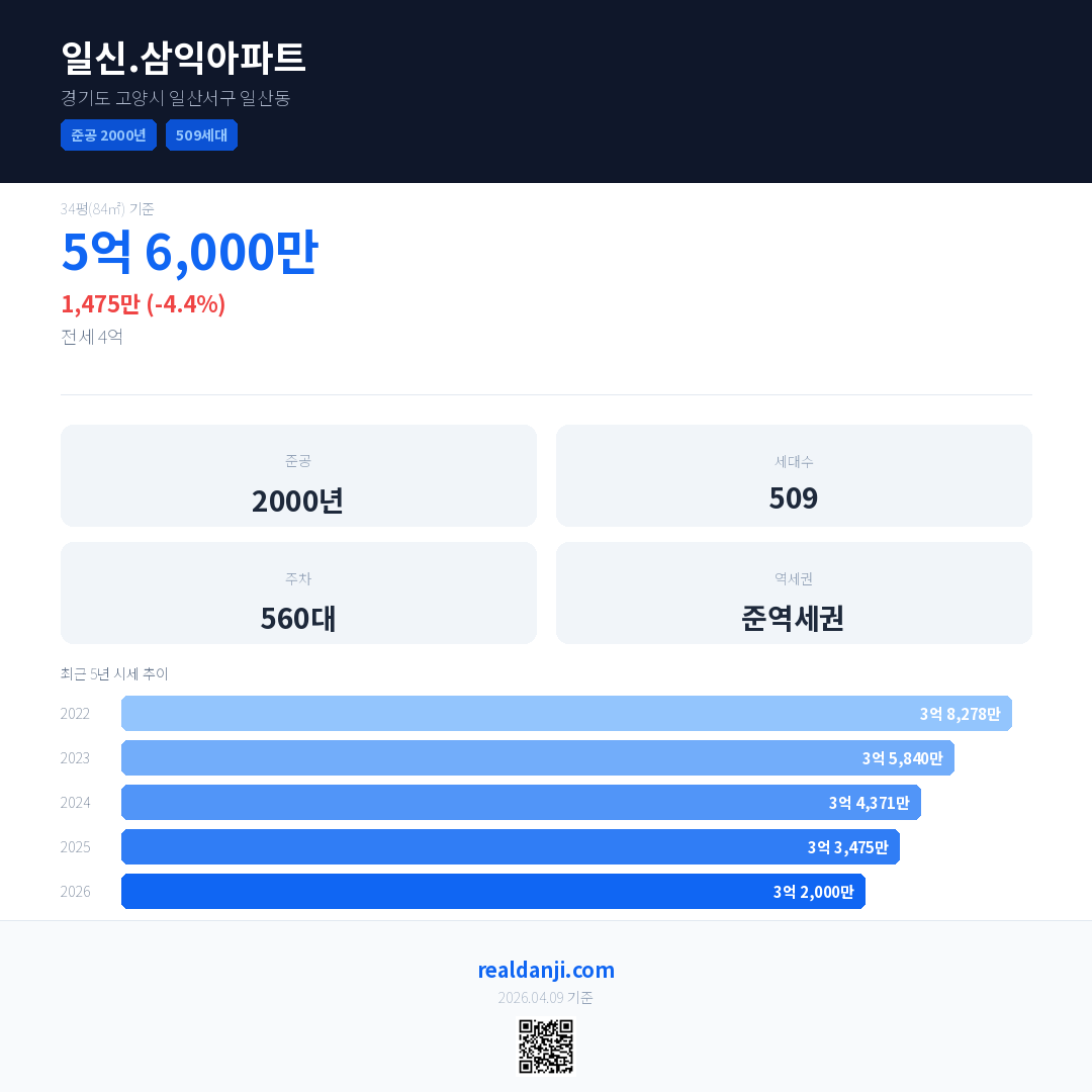 일신.삼익아파트 최근 거래가는 5억 6,000만입니다. (2026-03)