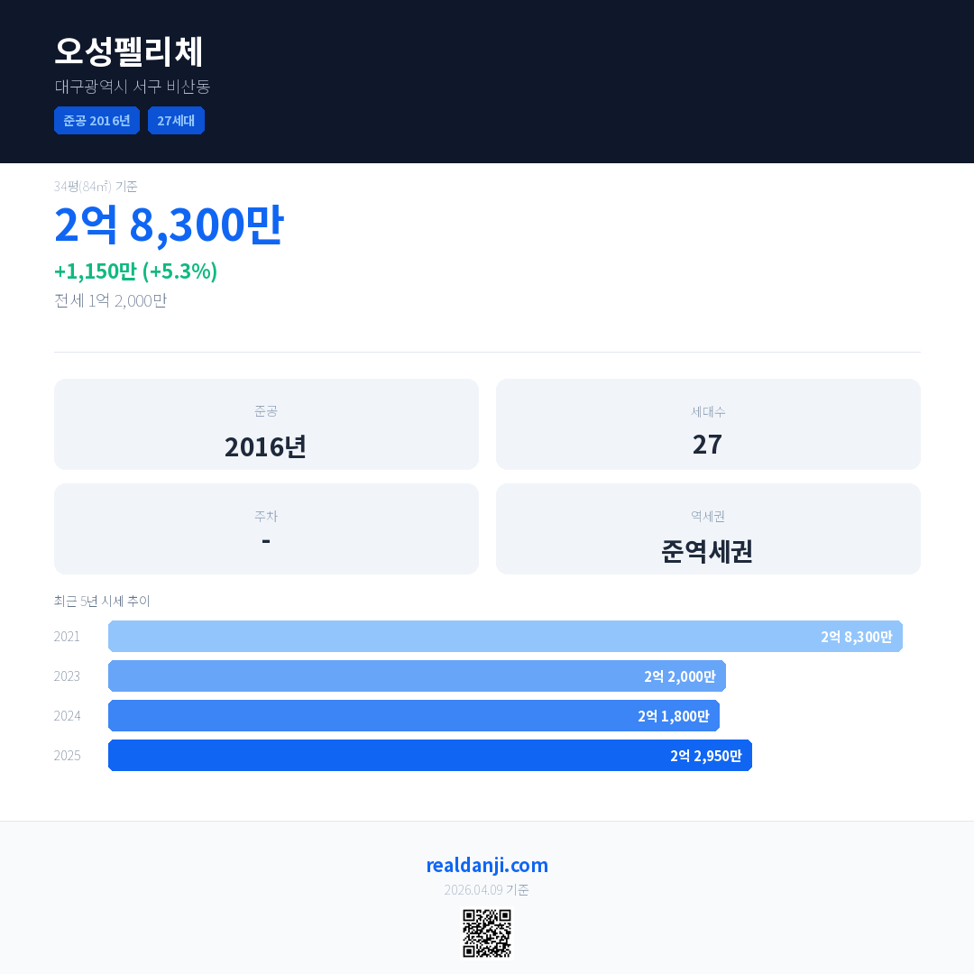 오성펠리체 최근 거래가는 2억 8,300만입니다. (2025-07)
