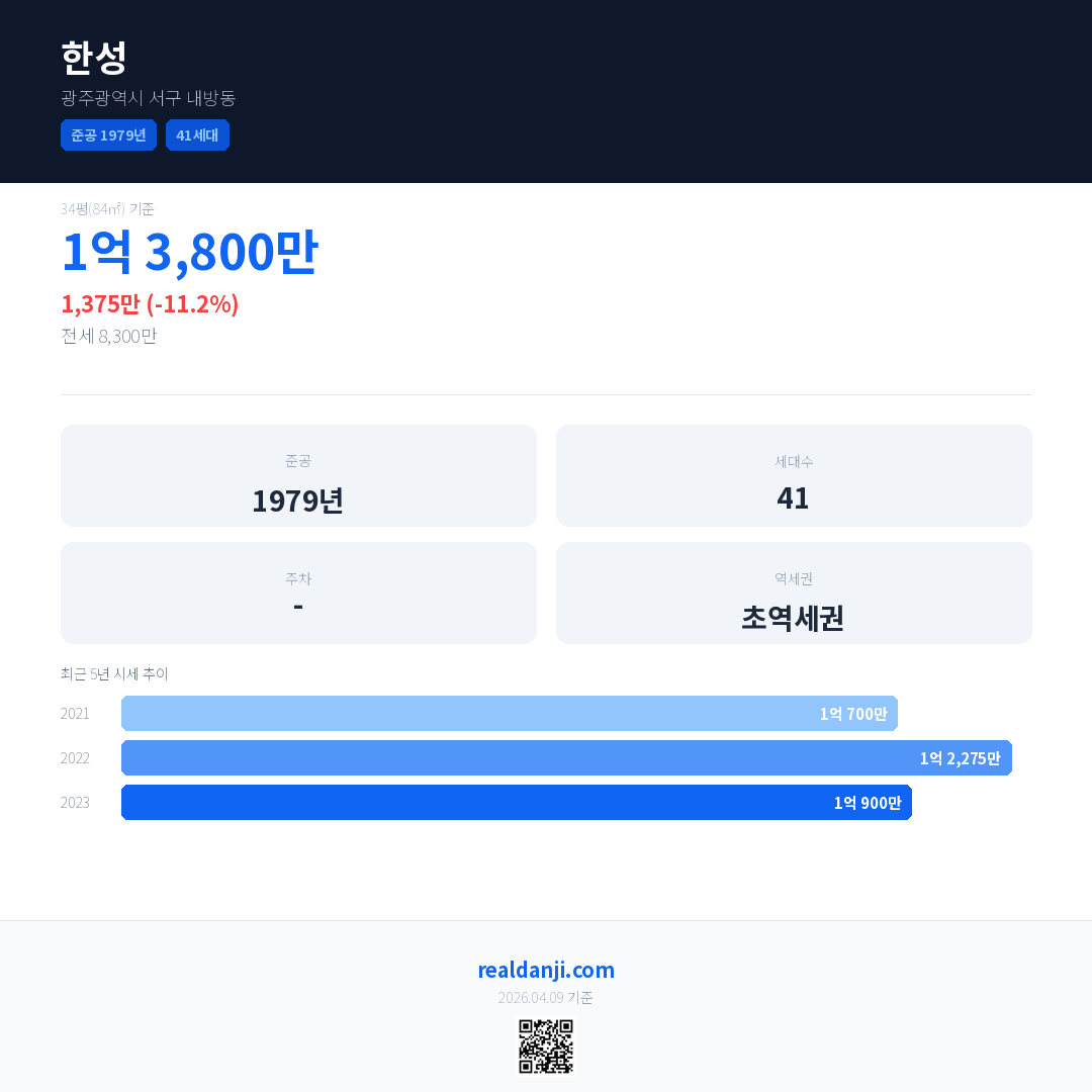 한성 최근 거래가는 1억 3,800만입니다. (2023-09)
