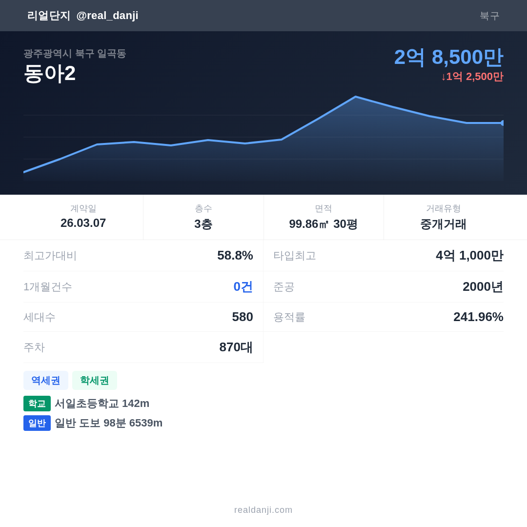동아2 최근 거래가는 4억 8,500만입니다. (2026-03)