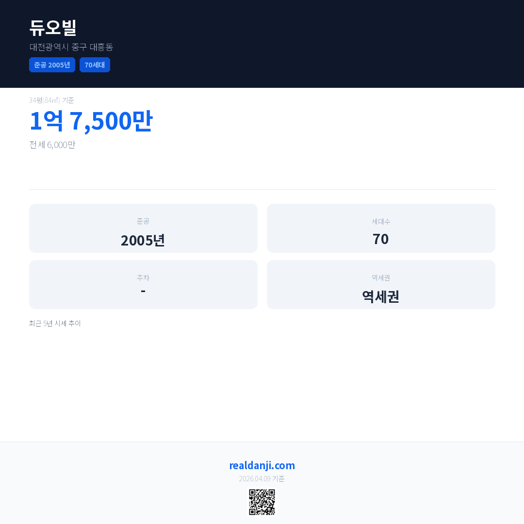 듀오빌 최근 거래가는 1억 7,500만입니다. (2025-12)