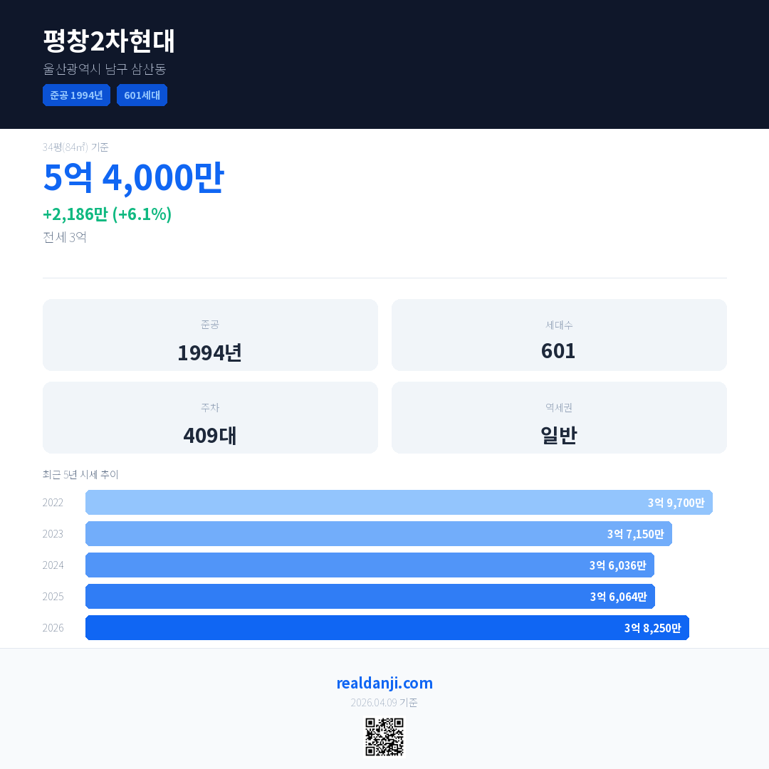 평창2차현대 최근 거래가는 5억 4,000만입니다. (2026-04)
