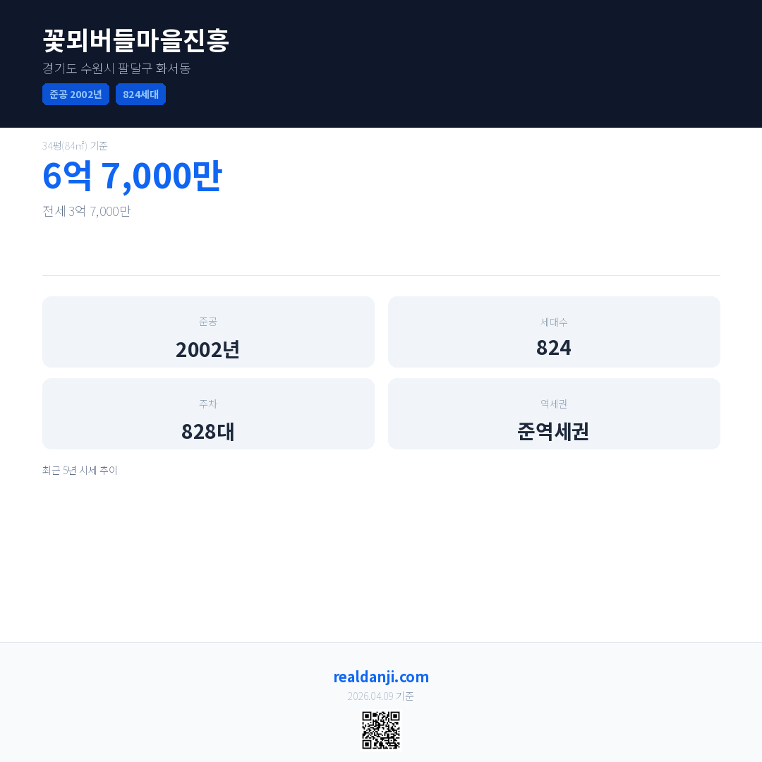 꽃뫼버들마을진흥 최근 거래가는 6억 7,000만입니다. (2026-03)
