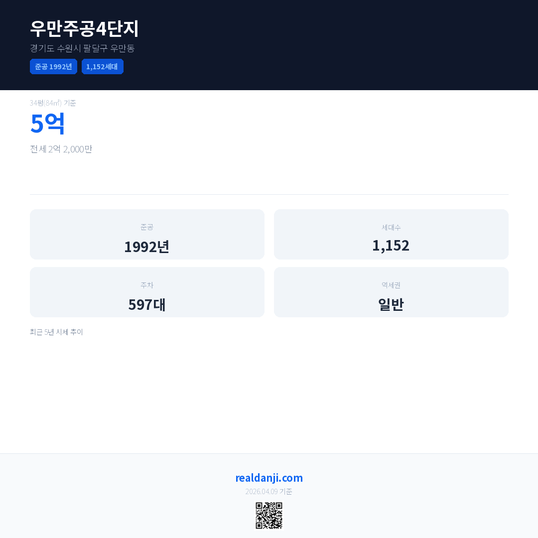 우만주공4단지 최근 거래가는 5억입니다. (2026-03)