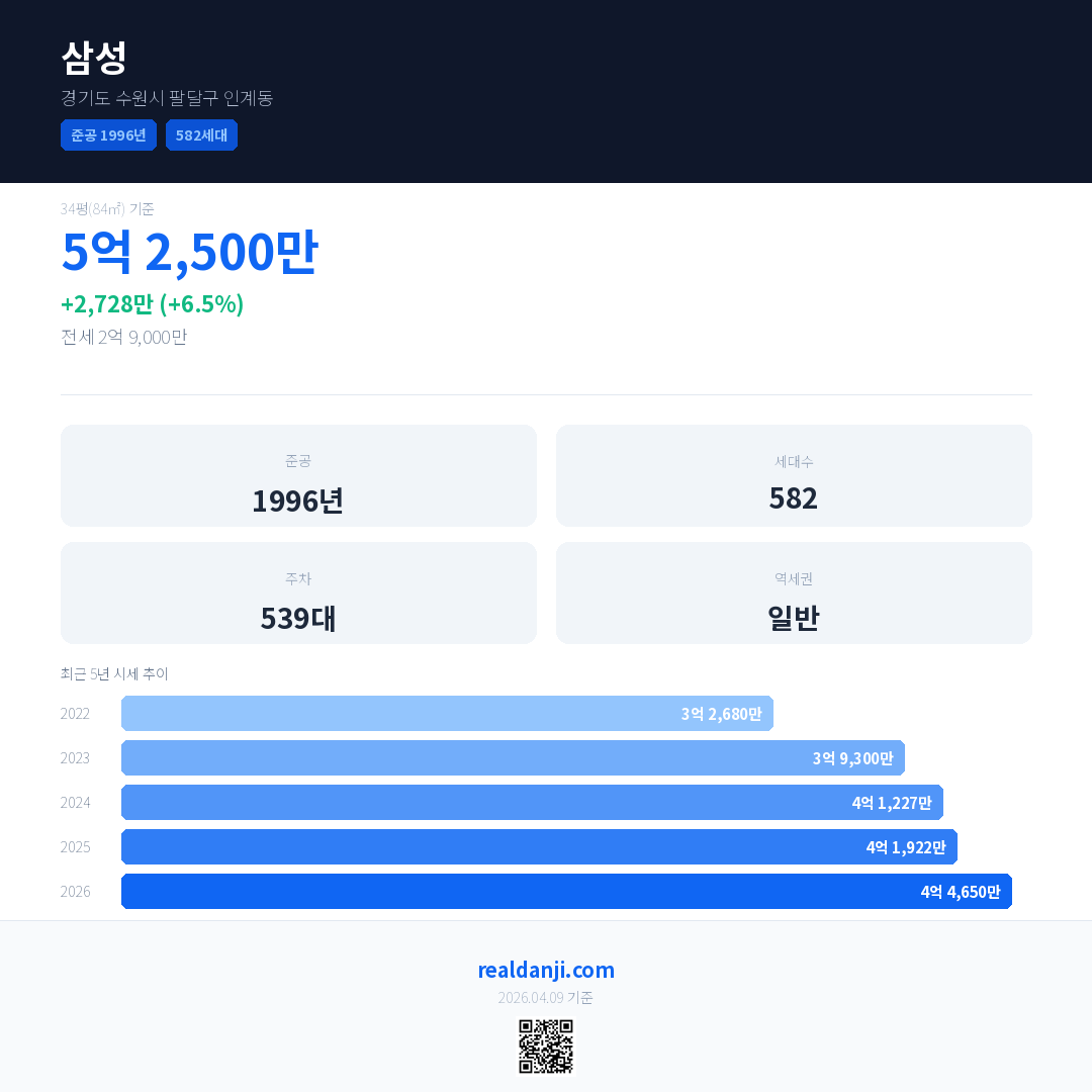 삼성 최근 거래가는 5억 2,500만입니다. (2026-03)