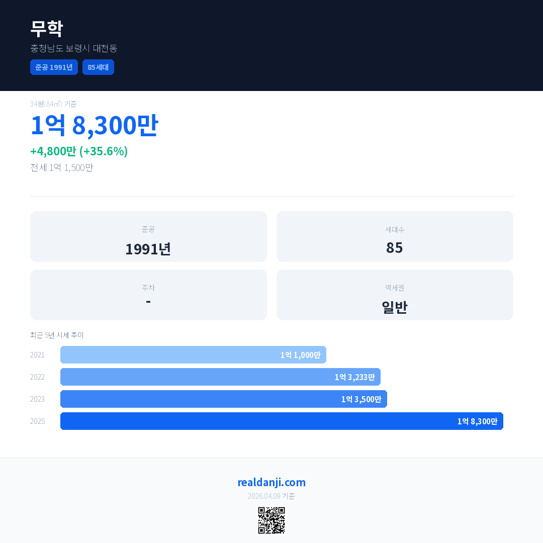 무학 최근 거래가는 1억 8,300만입니다. (2025-03)