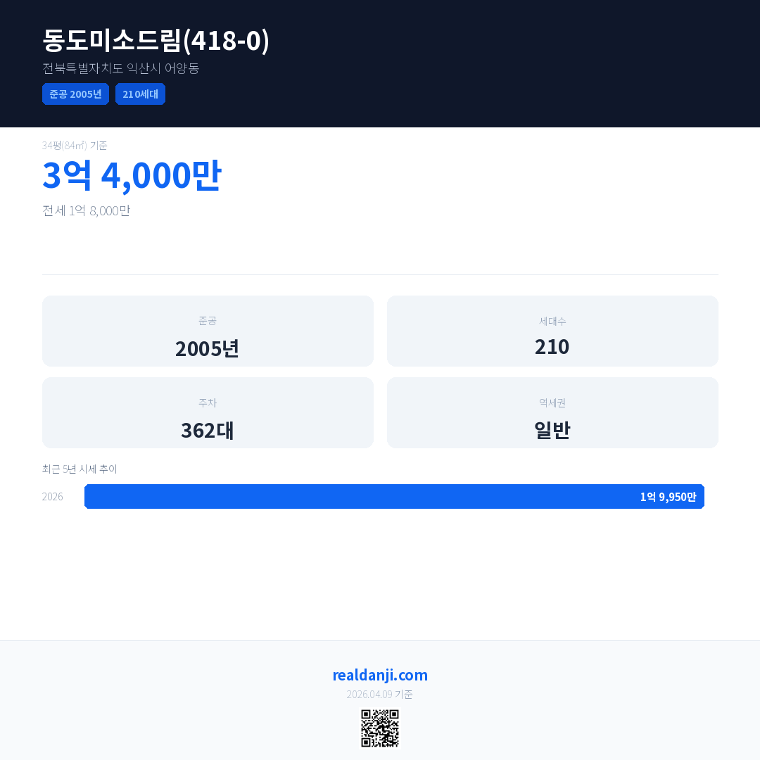 동도미소드림(418-0) 최근 거래가는 3억 4,000만입니다. (2026-03)