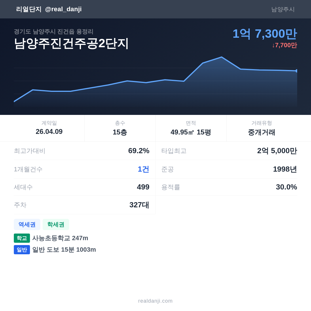 | 2026.04.09 | 50㎡ | 15층 | 1억 7,300만 |