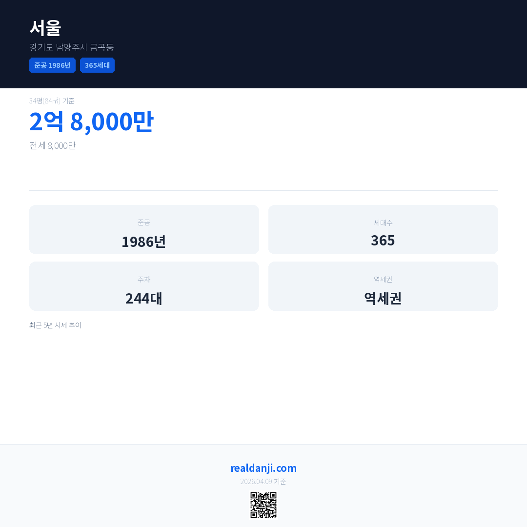 서울은(는) 1986년에 준공되었으며, 현재 40년차입니다. 총 365세대 규모입니다.
