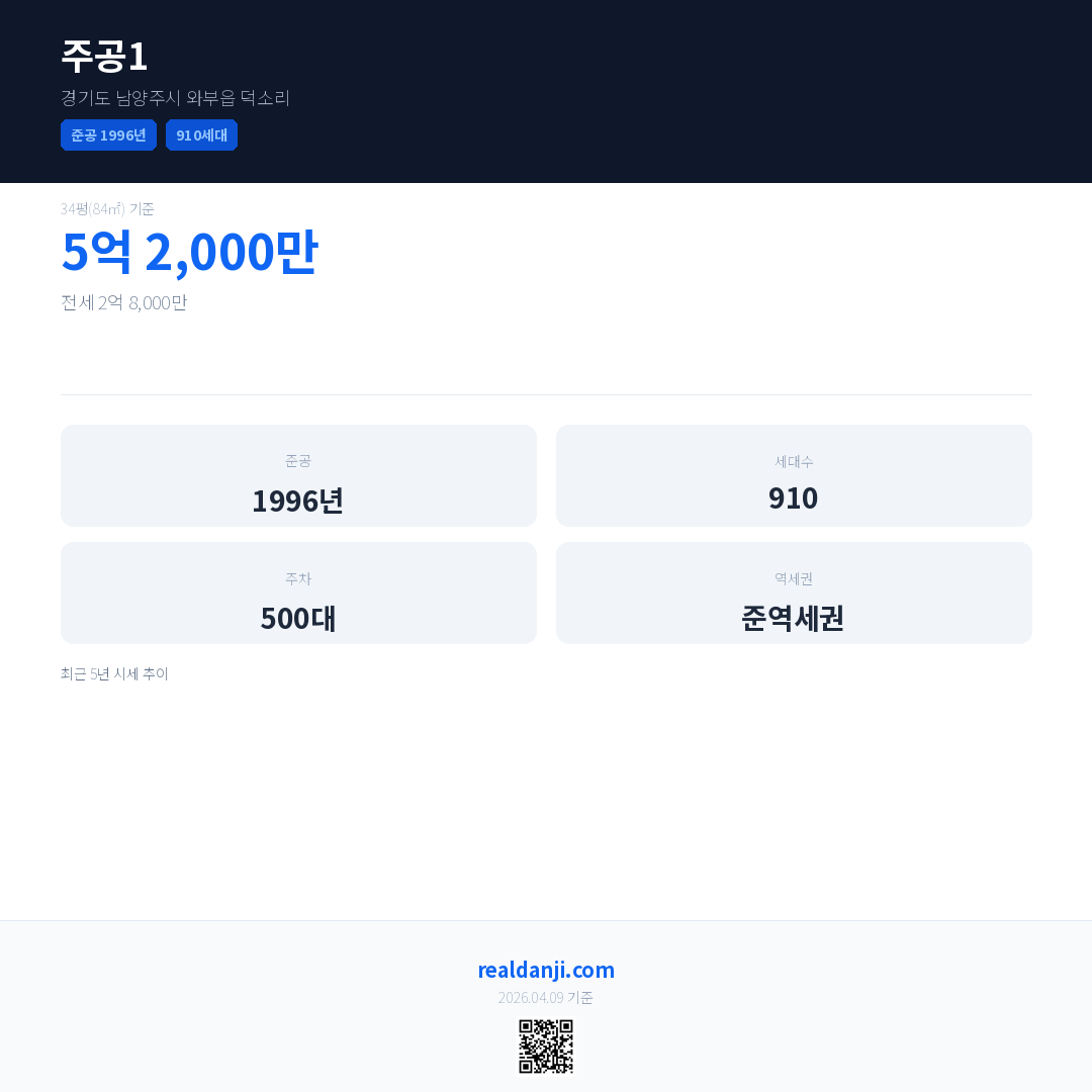 주공1 최근 거래가는 5억 2,000만입니다. (2026-03)