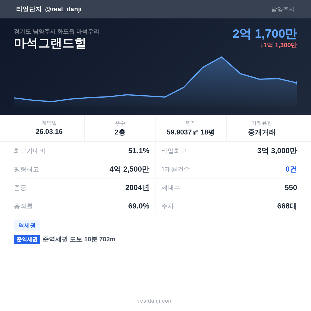 | 2026.03.16 | 60㎡ | 2층 | 2억 1,700만 |