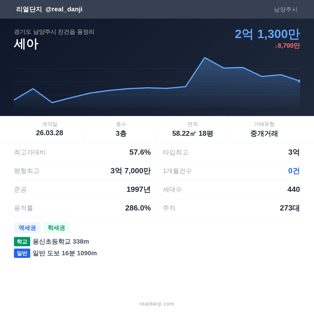 | 2026.03.28 | 58㎡ | 3층 | 2억 1,300만 |