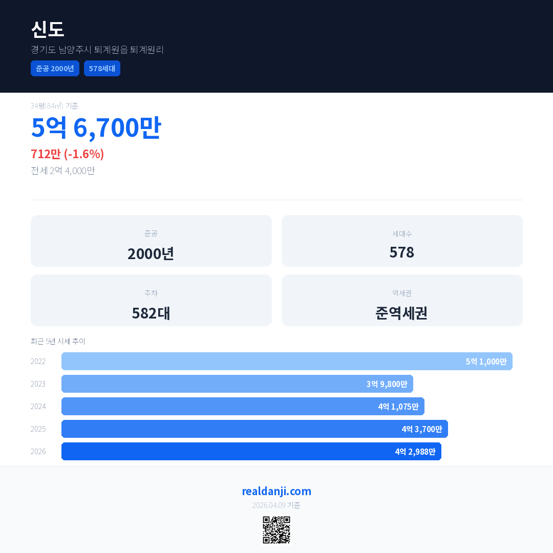 신도 최근 거래가는 5억 6,700만입니다. (2026-04)