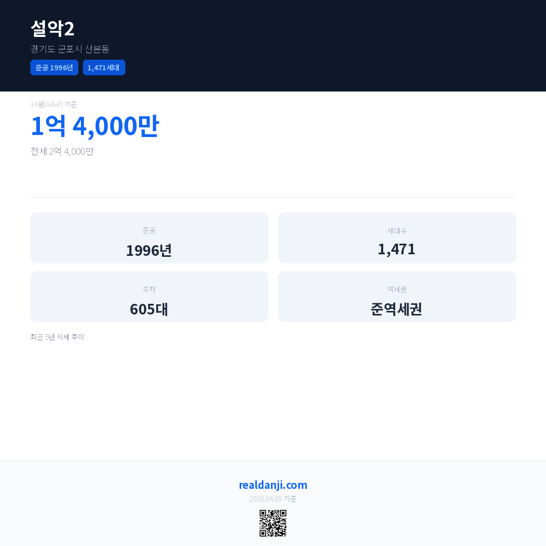 설악2은(는) 1996년에 준공되었으며, 현재 30년차입니다. 총 1,471세대 규모입니다.