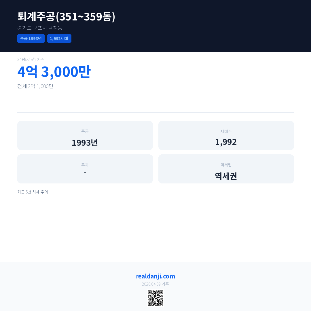 퇴계주공(351~359동) 최근 거래가는 2억 6,100만입니다. (2026-04)