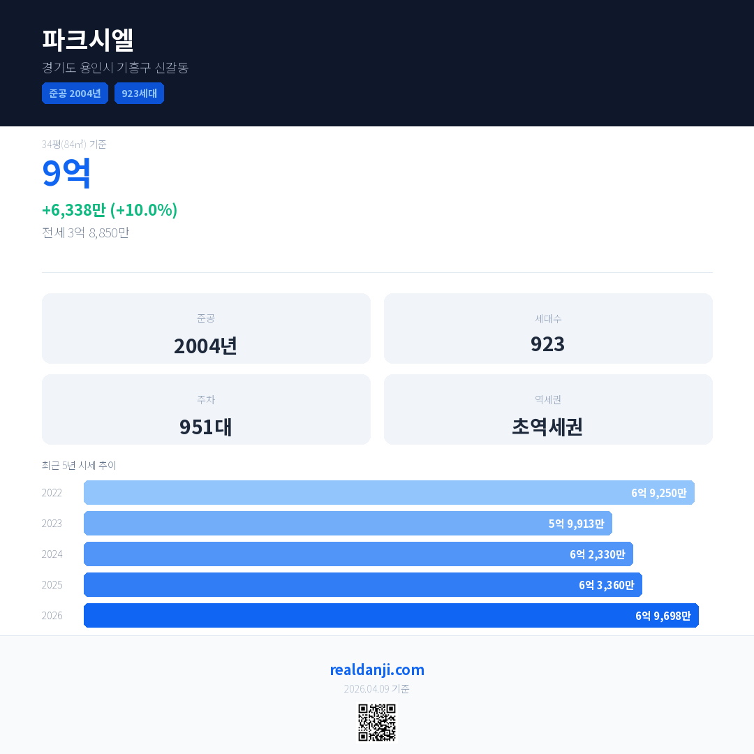 파크시엘 최근 거래가는 9억입니다. (2026-04)