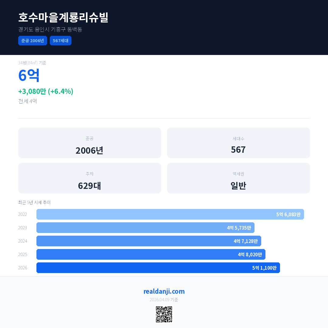 호수마을계룡리슈빌 최근 거래가는 6억입니다. (2026-03)