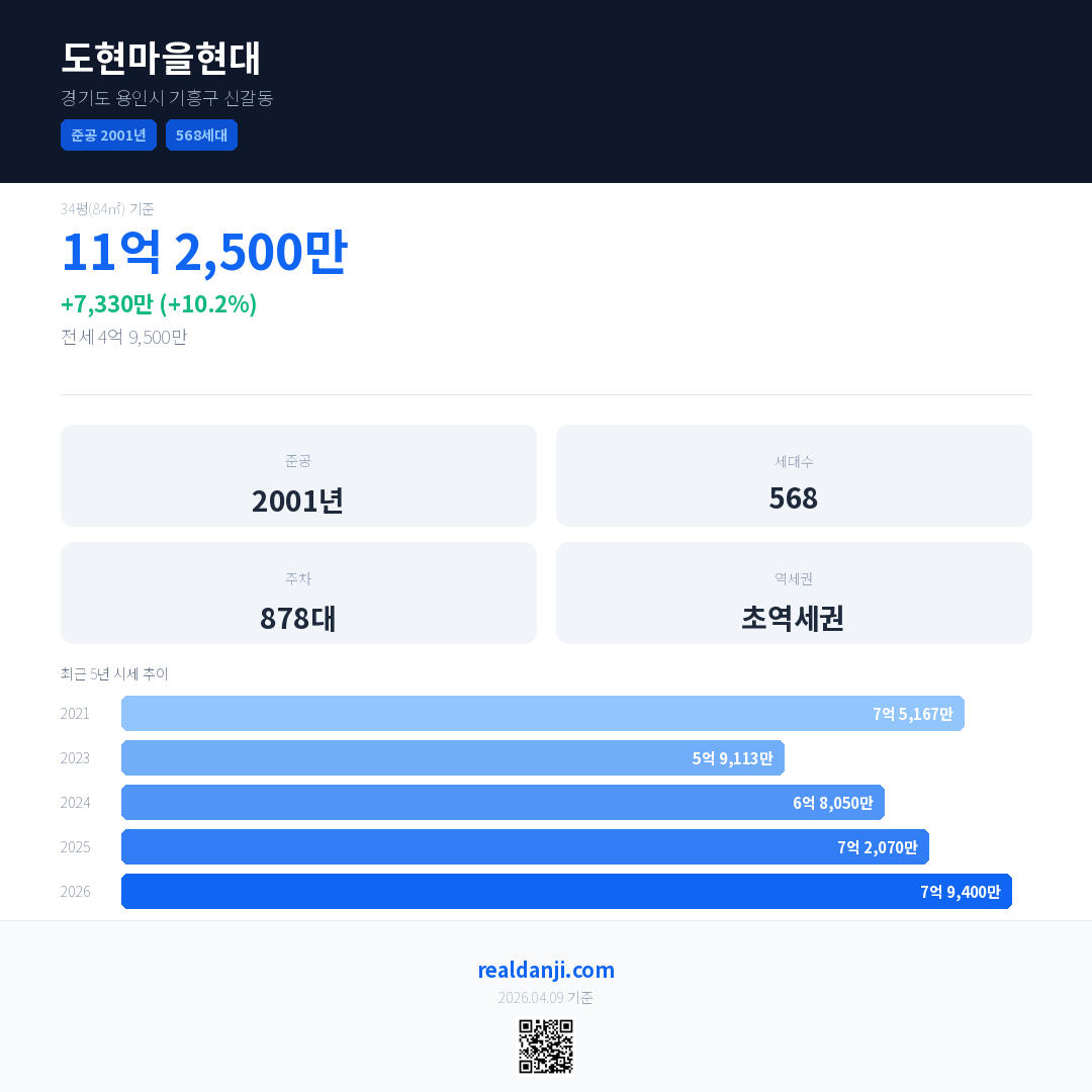 도현마을현대 최근 거래가는 11억 2,500만입니다. (2026-04)