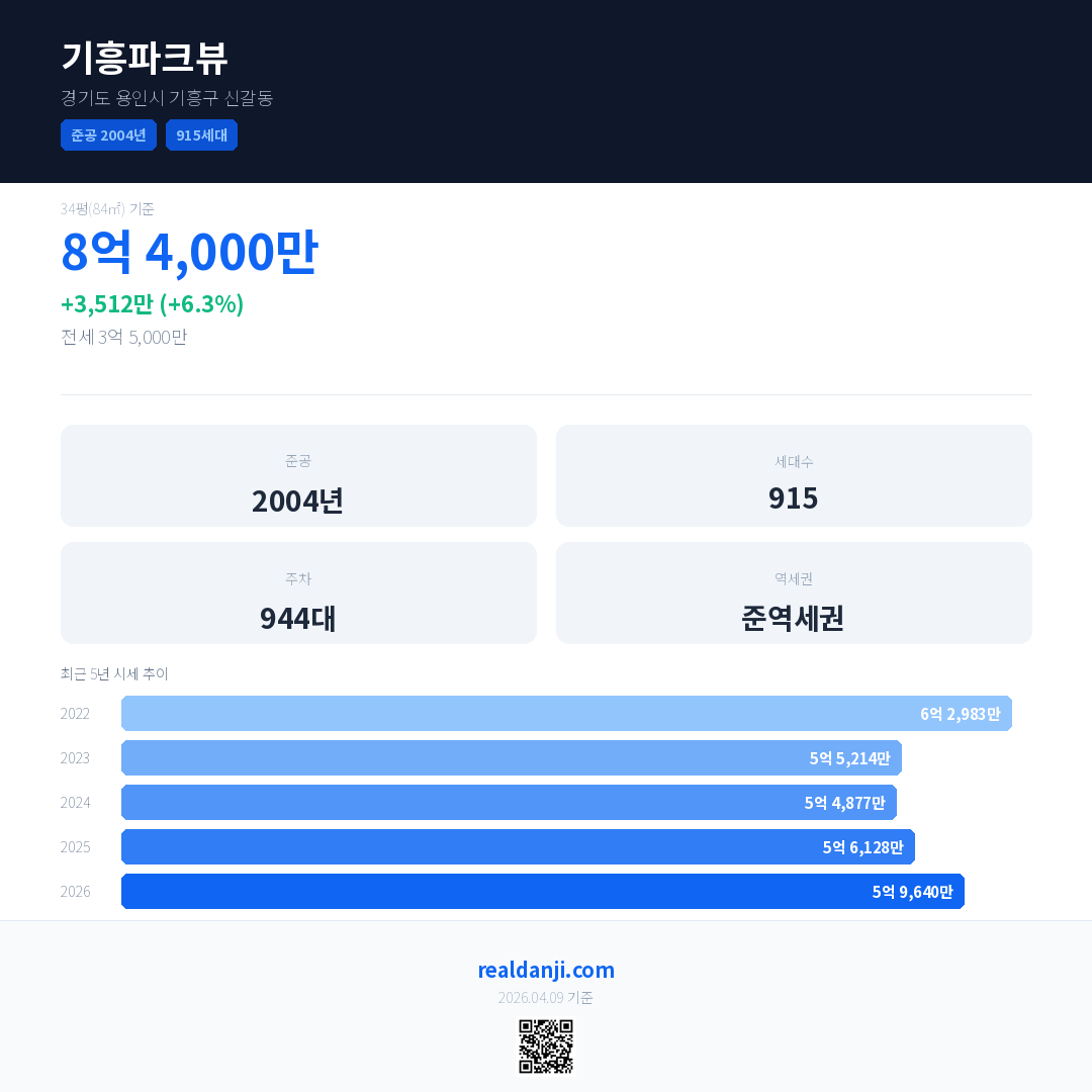 기흥파크뷰 최근 거래가는 8억 4,000만입니다. (2026-04)