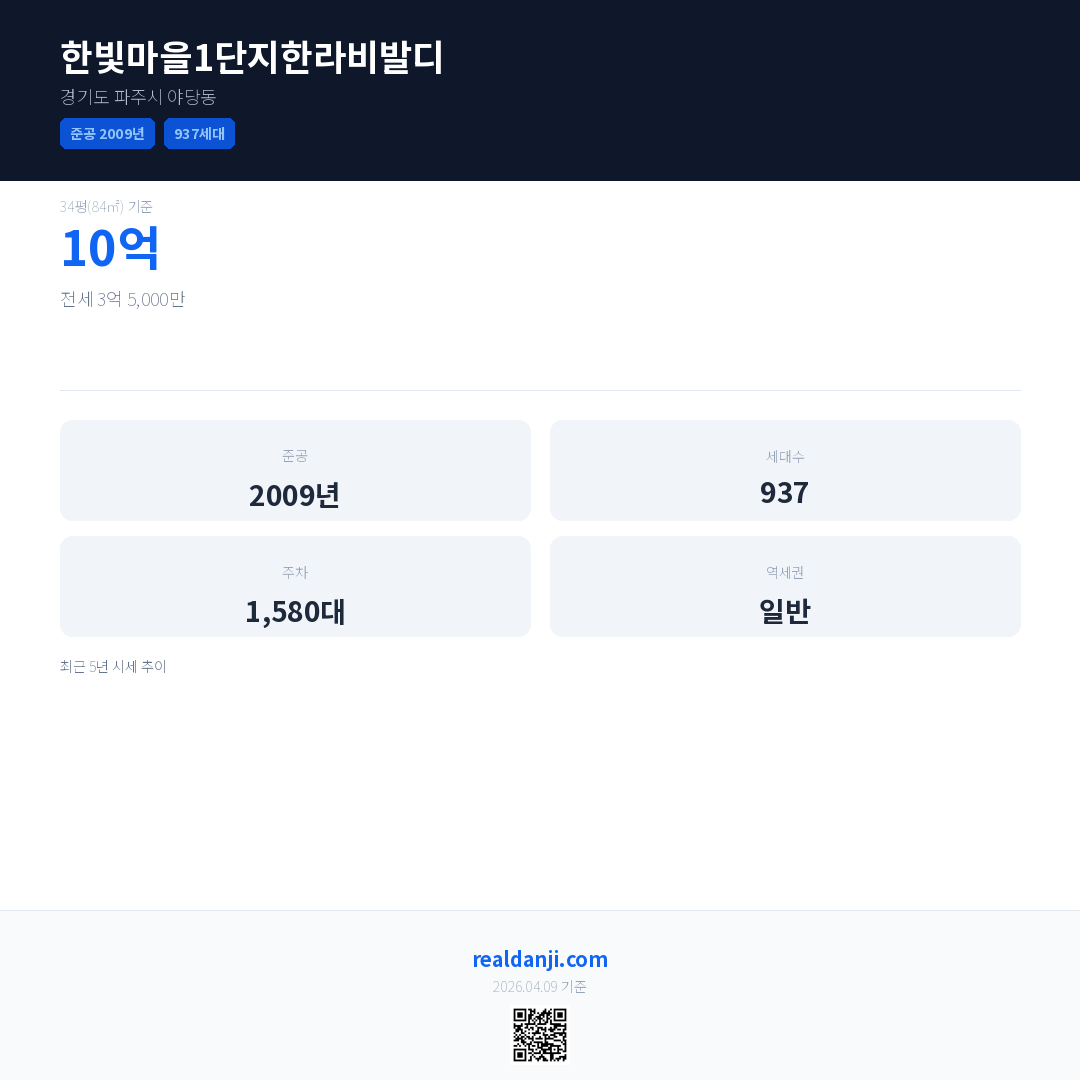 한빛마을1단지한라비발디 최근 거래가는 10억입니다. (2026-03)