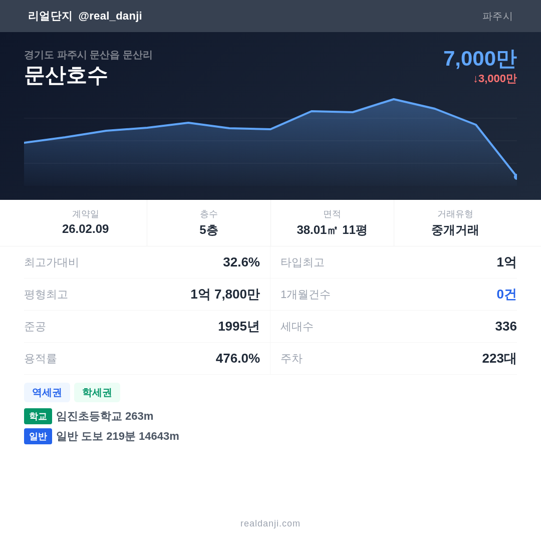 | 2026.02.09 | 38㎡ | 5층 | 7,000만 |
