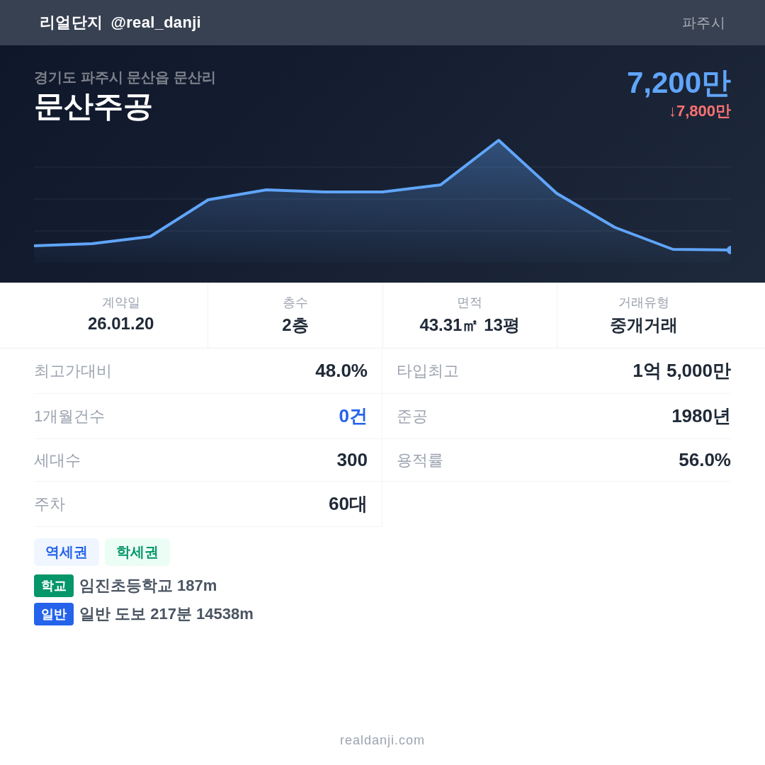 | 2026.01.20 | 43㎡ | 2층 | 7,200만 |