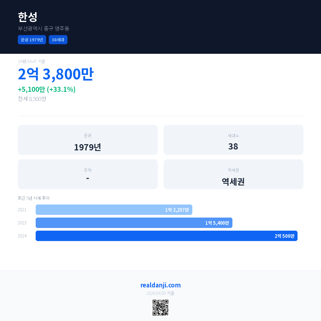 한성 최근 거래가는 2억 3,800만입니다. (2024-07)