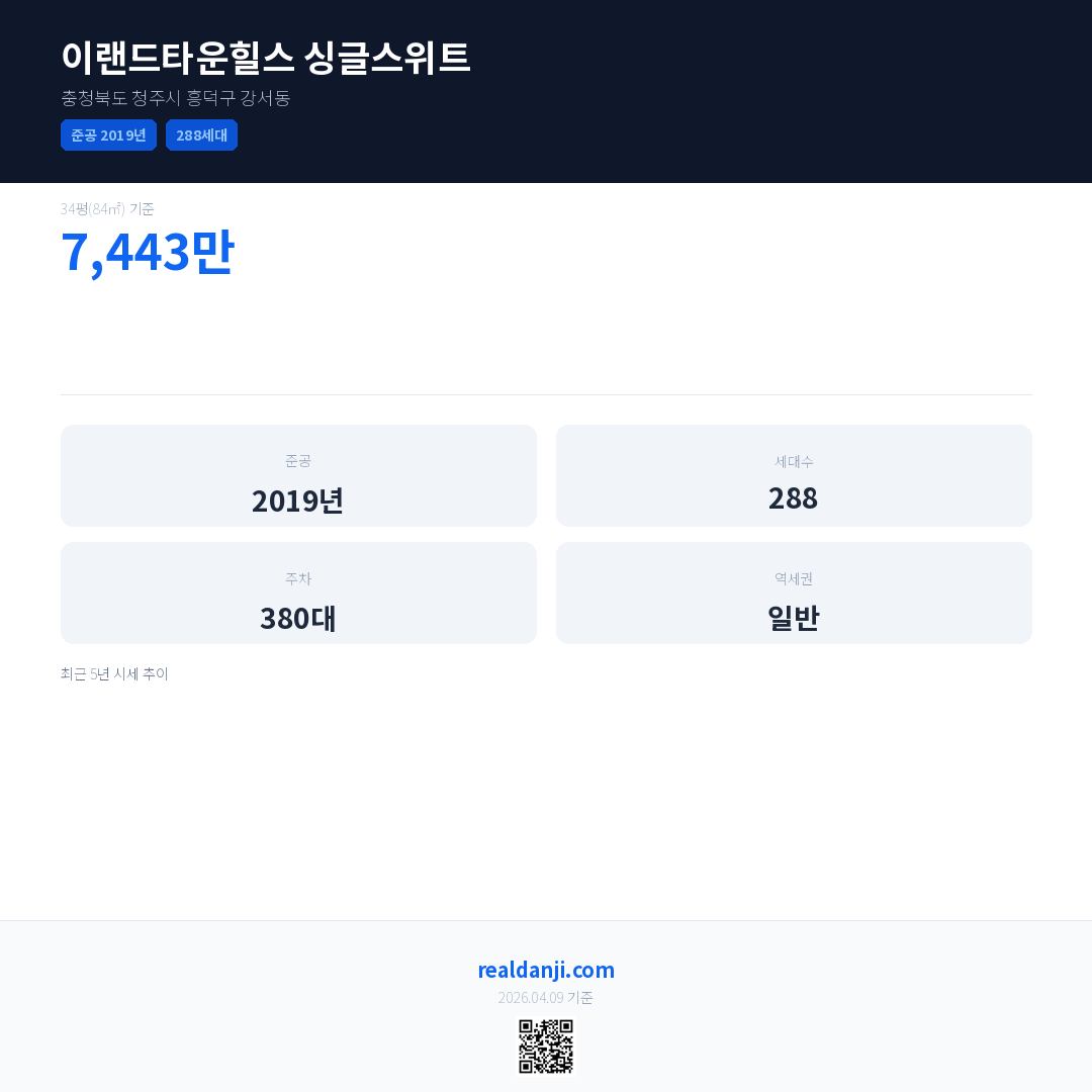 이랜드타운힐스 싱글스위트 최근 거래가는 7,443만입니다. (2026-02)