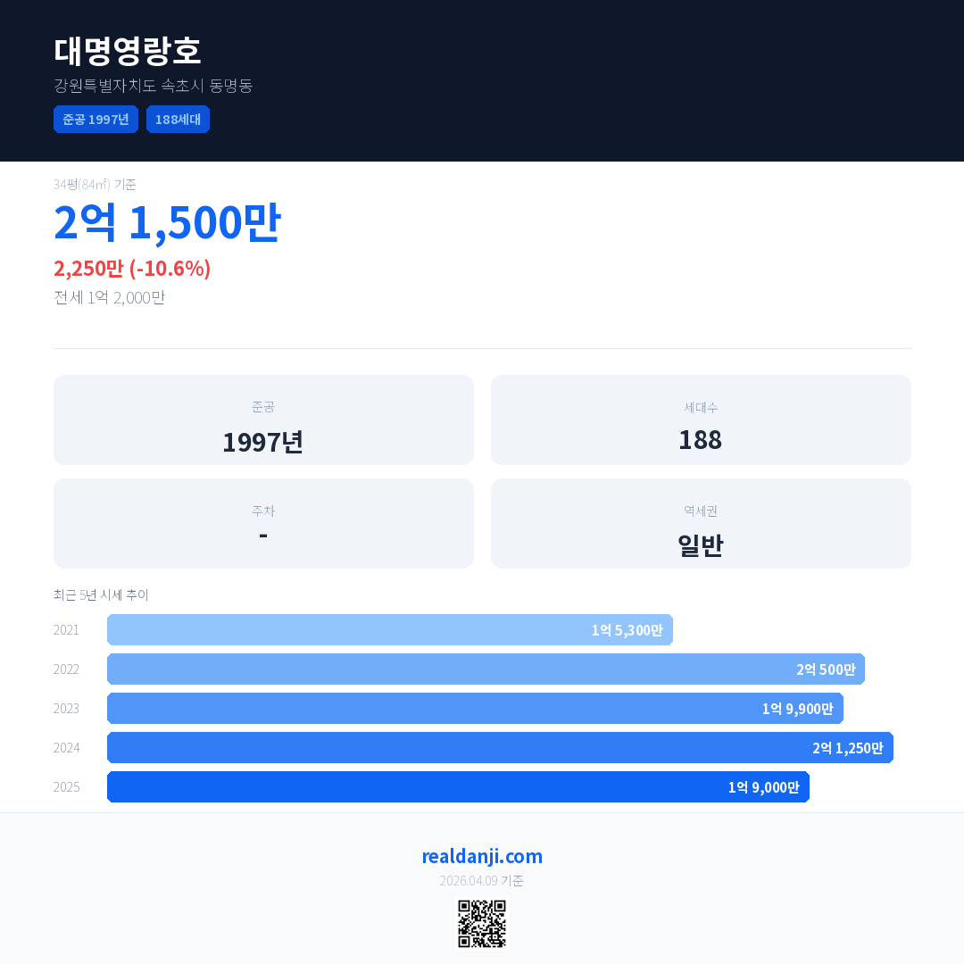 대명영랑호 최근 거래가는 2억 1,500만입니다. (2026-02)