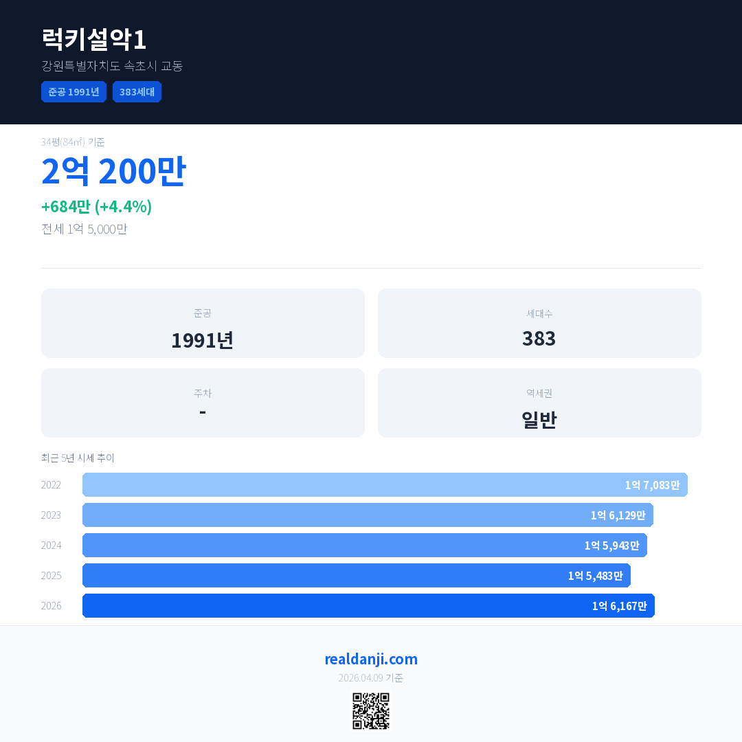 럭키설악1 최근 거래가는 2억 200만입니다. (2026-02)