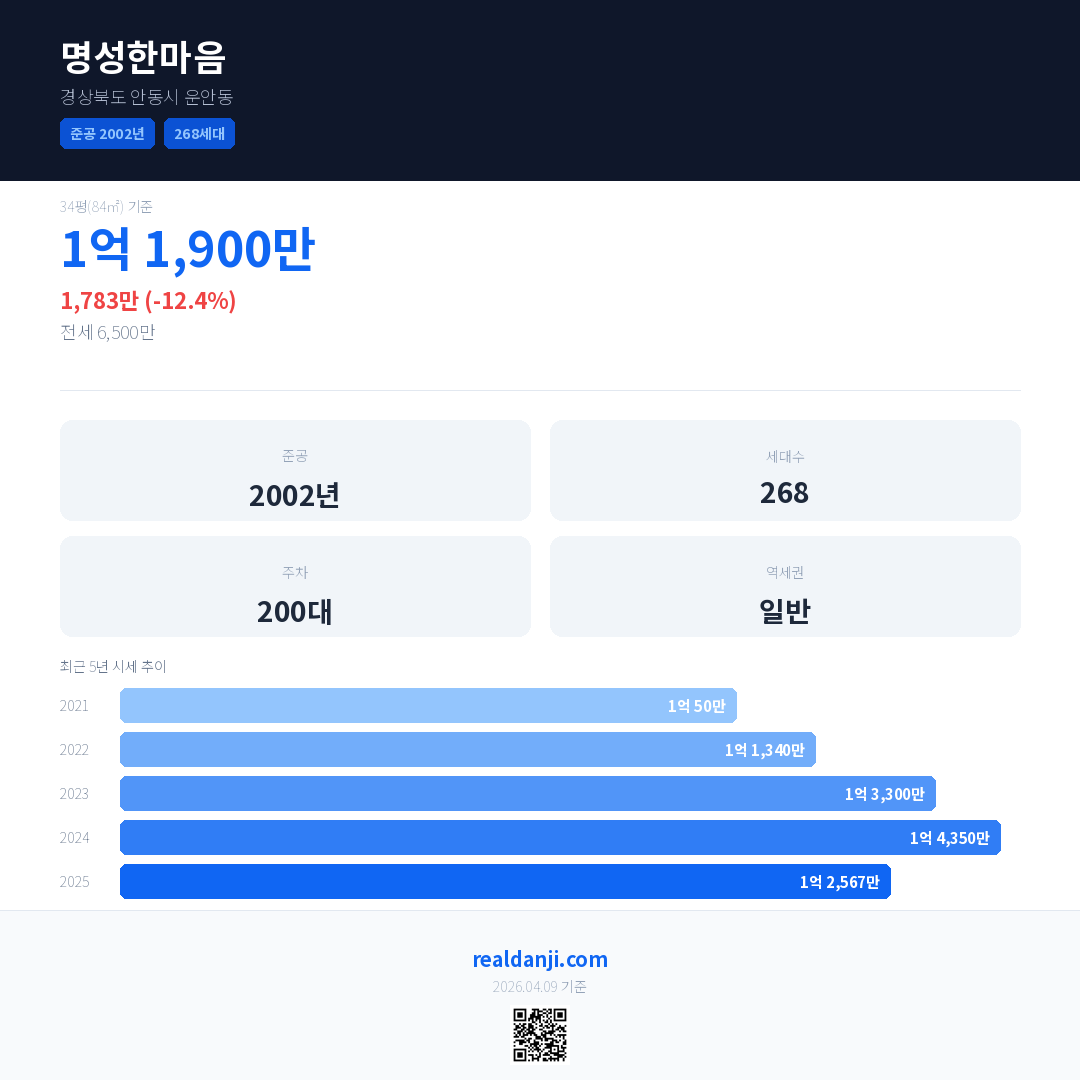 명성한마음 최근 거래가는 1억 9,000만입니다. (2026-03)