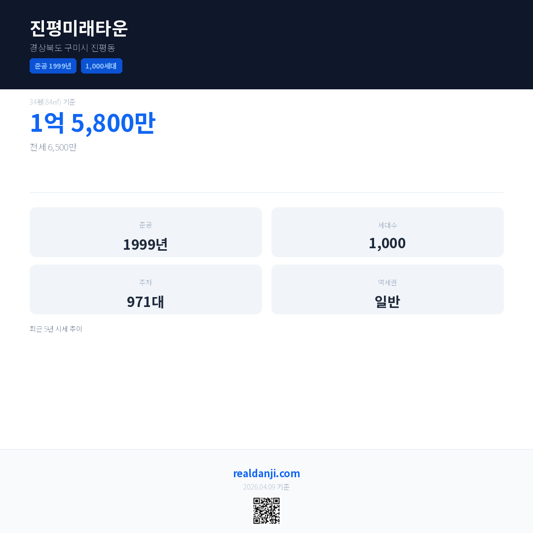 진평미래타운은(는) 1999년에 준공되었으며, 현재 27년차입니다. 총 1,000세대 규모입니다.