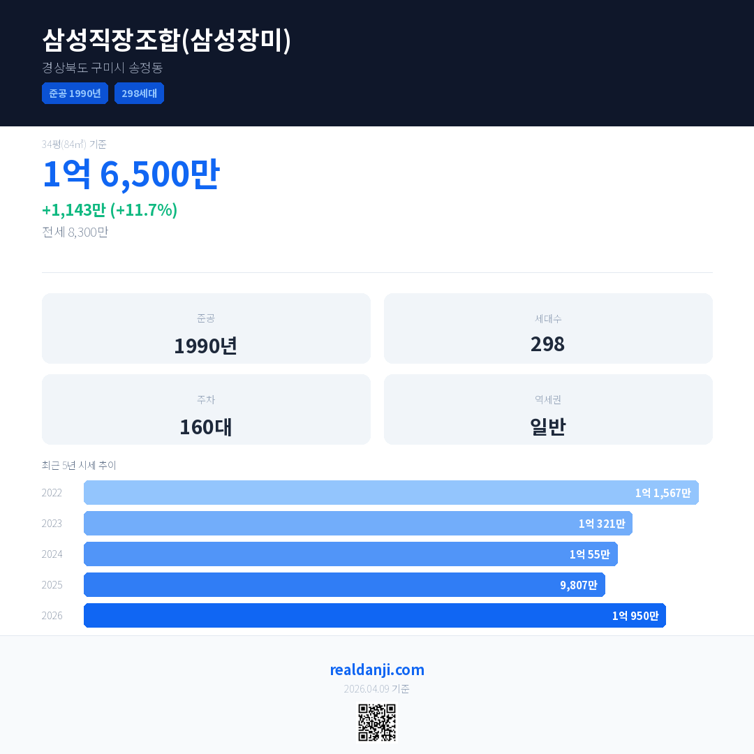 삼성직장조합(삼성장미) 최근 거래가는 1억 6,500만입니다. (2026-03)