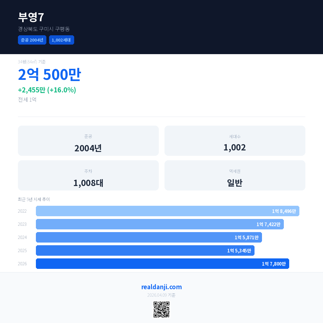 부영7 최근 거래가는 2억 500만입니다. (2026-03)
