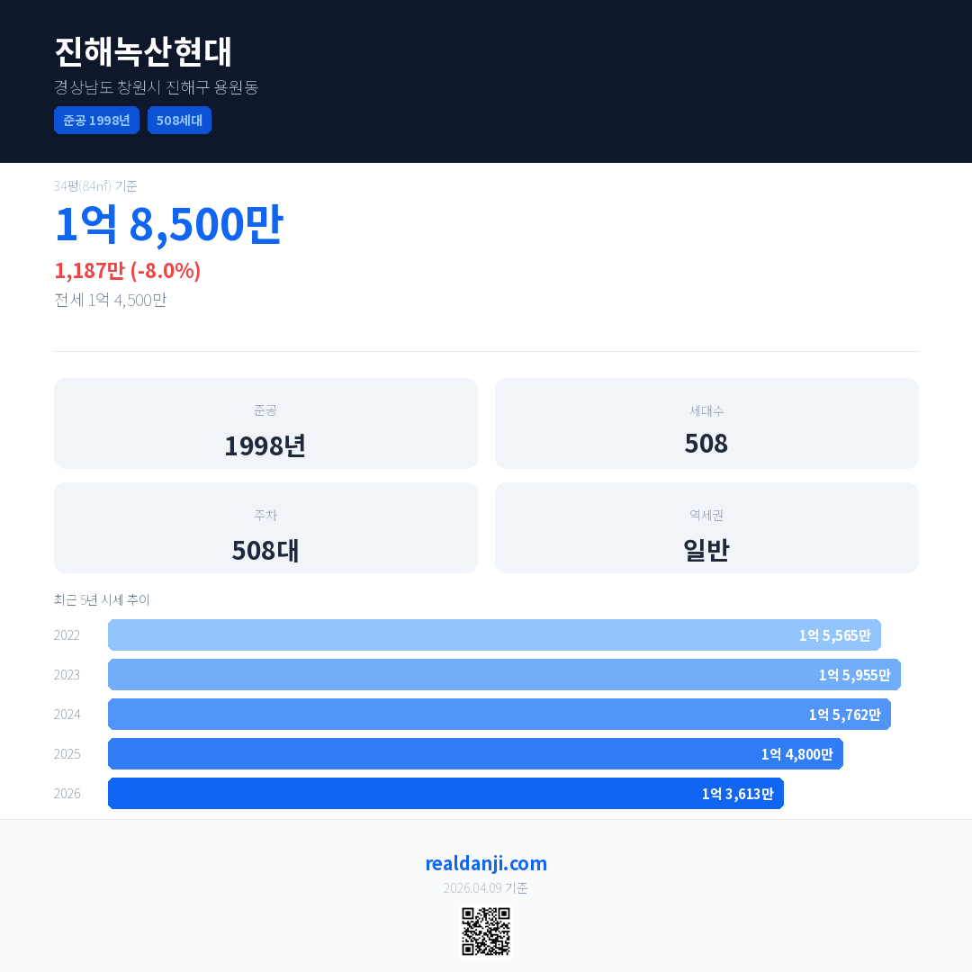 진해녹산현대 최근 거래가는 1억 8,500만입니다. (2026-03)