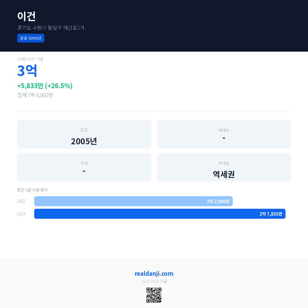 이건은(는) 2005년에 준공되었으며, 현재 21년차입니다.