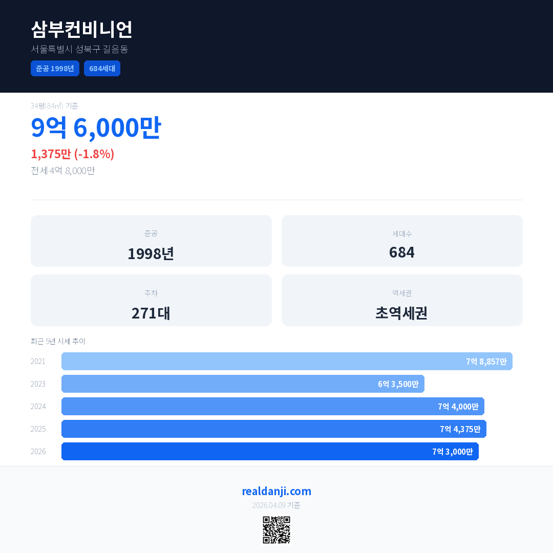 삼부컨비니언 최근 거래가는 9억 6,000만입니다. (2026-03)