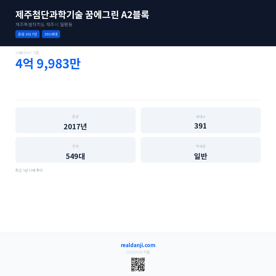제주첨단과학기술 꿈에그린 A2블록은(는) 2017년에 준공되었으며, 현재 9년차입니다. 총 391세대 규모입니다.