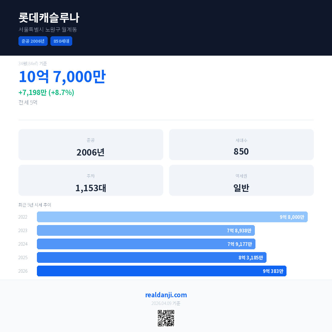 롯데캐슬루나 최근 거래가는 10억 7,000만입니다. (2026-04)