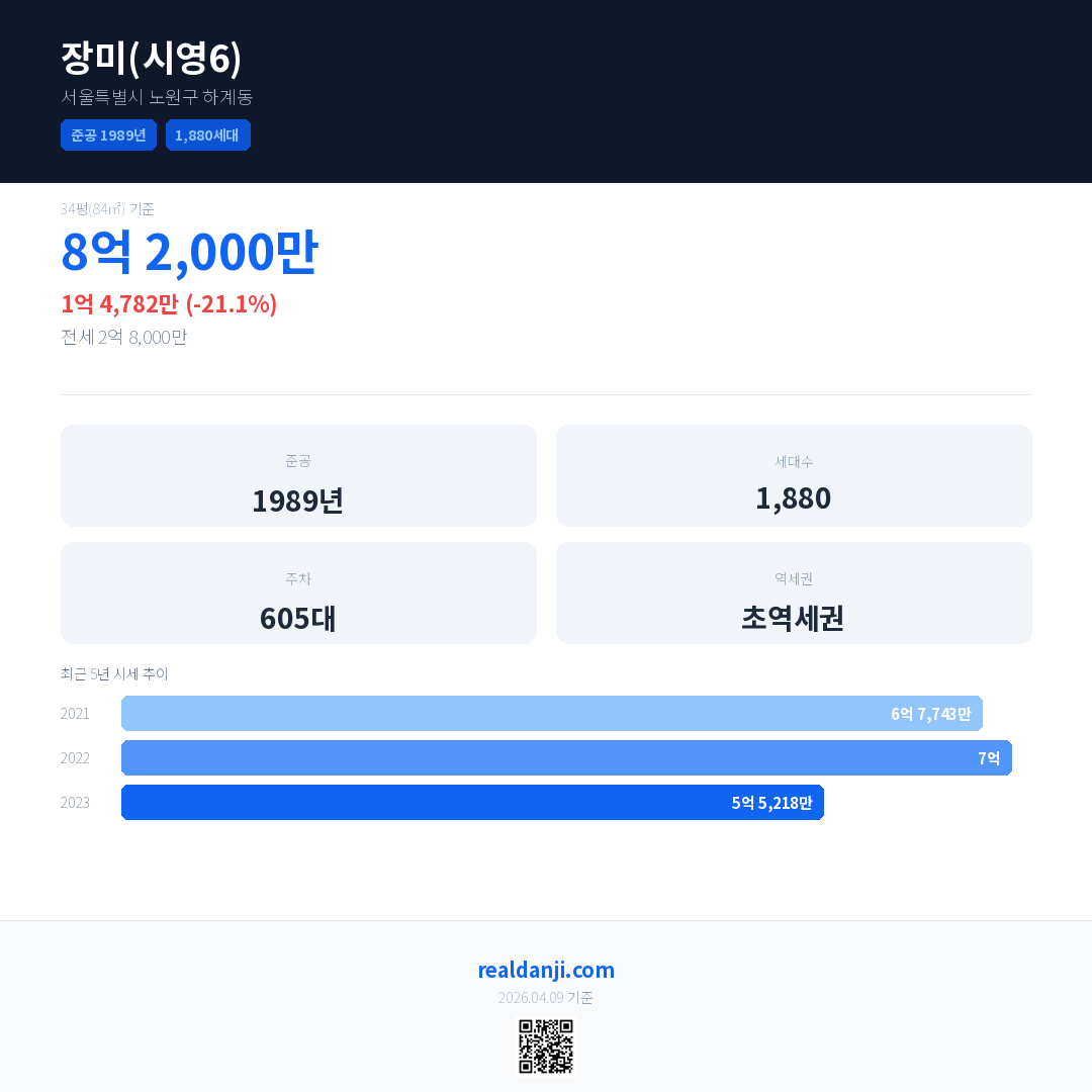 장미(시영6) 최근 거래가는 8억 2,000만입니다. (2026-03)