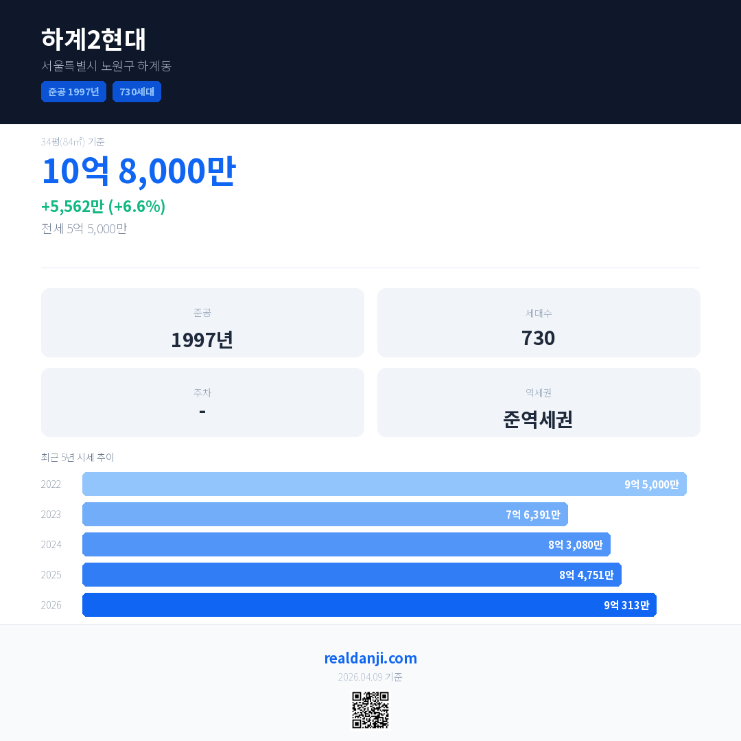 하계2현대 최근 거래가는 8억 6,500만입니다. (2026-04)