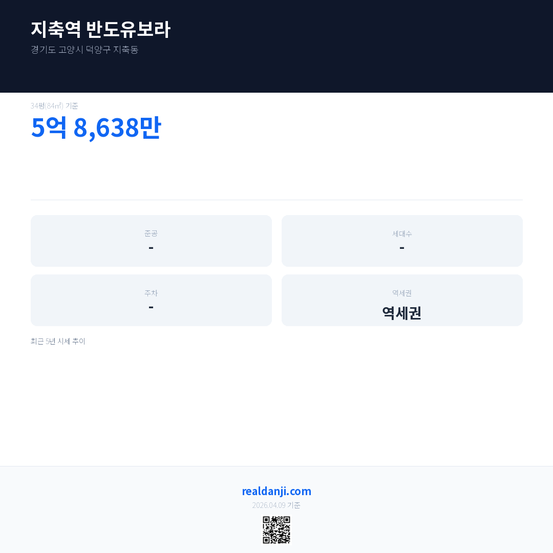지축역 반도유보라 최근 거래가는 5억 8,638만입니다. (2019-08)