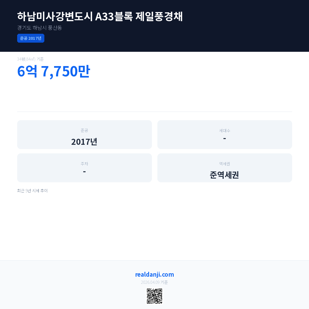 하남미사강변도시 A33블록 제일풍경채은(는) 2017년에 준공되었으며, 현재 9년차입니다.